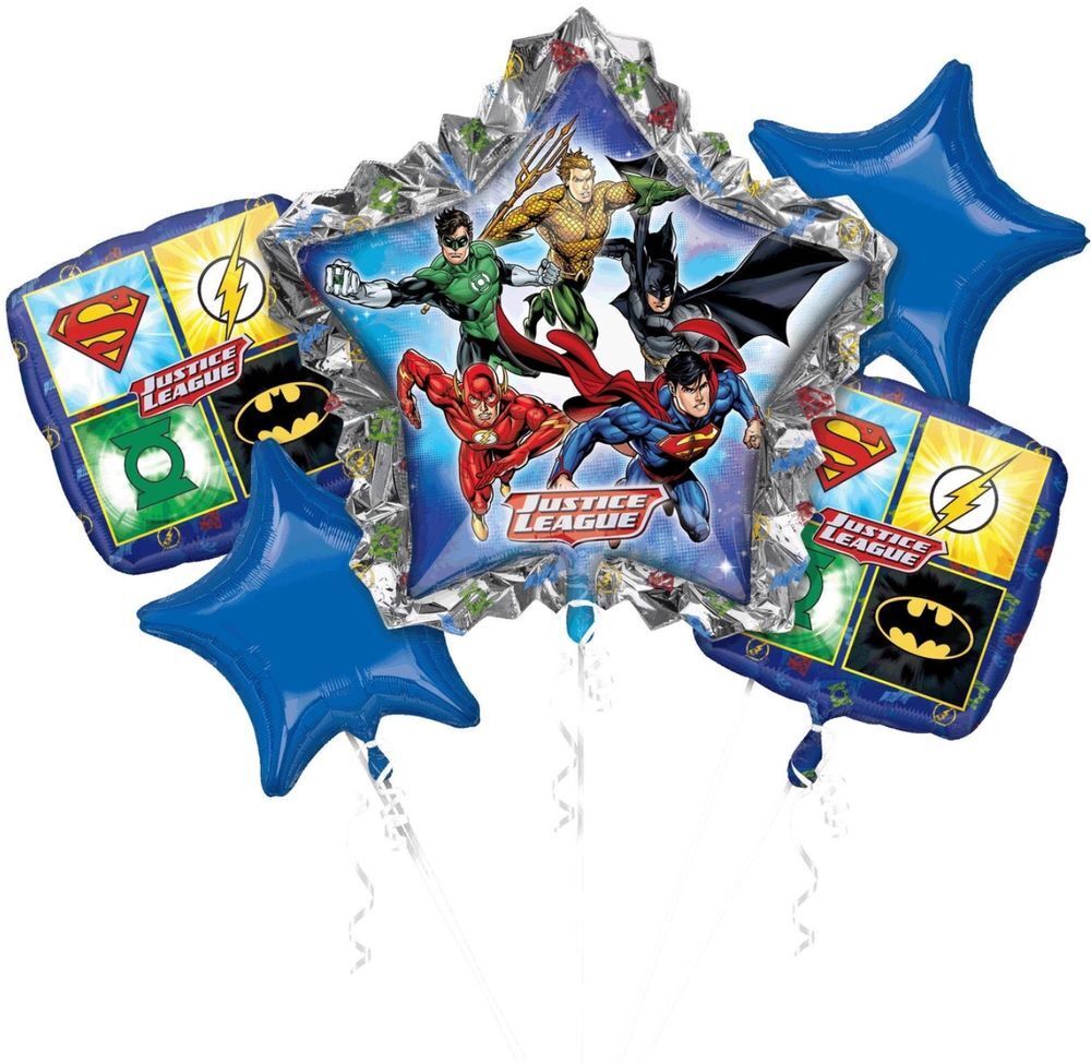 Объёмный фольгированный шар с изображением эмблем супергероев Лиги справедливости станет ярким акцентом на детской или тематической вечеринке.