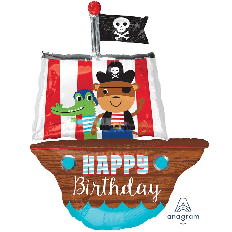 Воздушный шарик с изображением животных-пиратов - обезьяны и крокодила - на пиратском корабле с надписью Happy Birthday (С Днем Рождения). Яркие цвета и динамичный сюжет увлекут детей в приключение. Размер надутого шара: 27"/68см ш x 34"/86см в. Для надувания рекомендуется использовать гелий. Имеет встроенный клапан, что упрощает надувание. Высококачественная тонкая пленка обеспечивает шарам сохранение формы от недели до одного месяца. Фольгированный шар продается ненадутым. Внимание! Реальный цвет может незначительно отличаться от изображения на экране в зависимости от настроек вашего монитора.