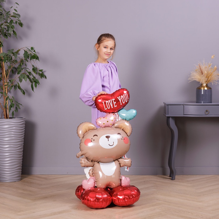 Медвежонок в окружении сердечек с надписью «LOVE YOU» - это готовое признание в любви. Этот шар сам расскажет о ваших чувствах.