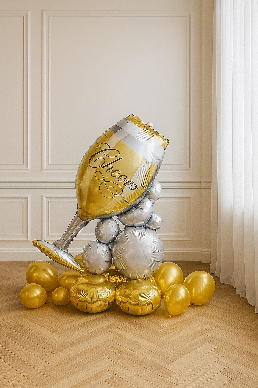 Фольгированный шар в форме бокала шампанского — это стильный воздушный шар, выполненный из качественной полимерной плёнки. Он станет ярким и запоминающимся элементом для любого праздника.