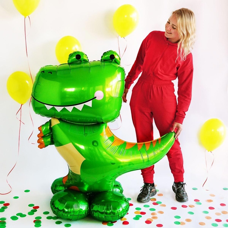Объемный шар в виде милого динозаврика станет эффектным украшением праздника или оригинальным подарком.