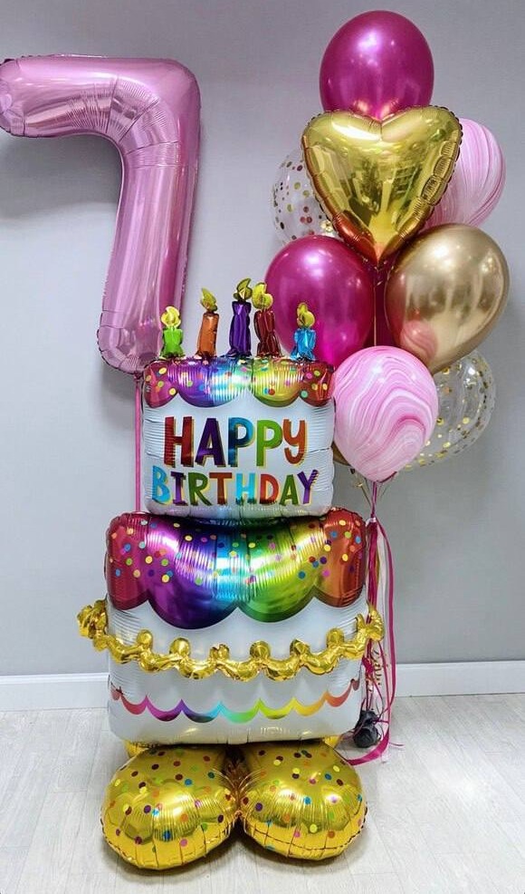 Фольгированный шар в форме торта — это элегантный и стильный элемент декора для любого праздника.