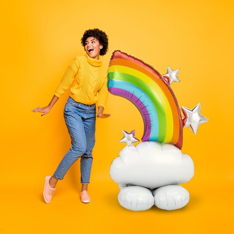 Фольгированная фигура в виде радуги высотой 157 см станет эффектным и стильным украшением праздника. Яркие оттенки и изящная форма придают шаровой композиции выразительный и радостный вид.