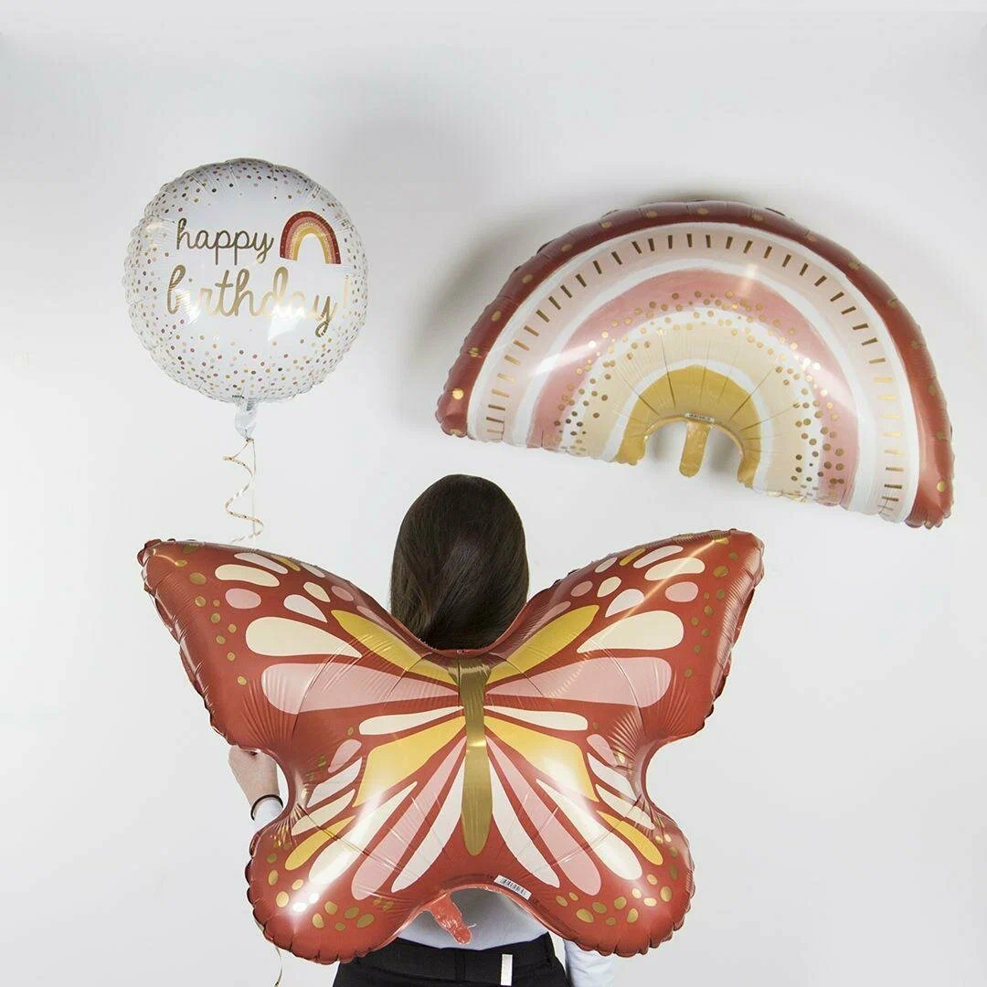 Фольгированная фигура в виде бабочки в стиле Бохо высотой 89 см станет утончённым и выразительным акцентом любого праздника. Изысканные детали и гармоничная цветовая палитра придают композиции элегантный и стильный вид.
