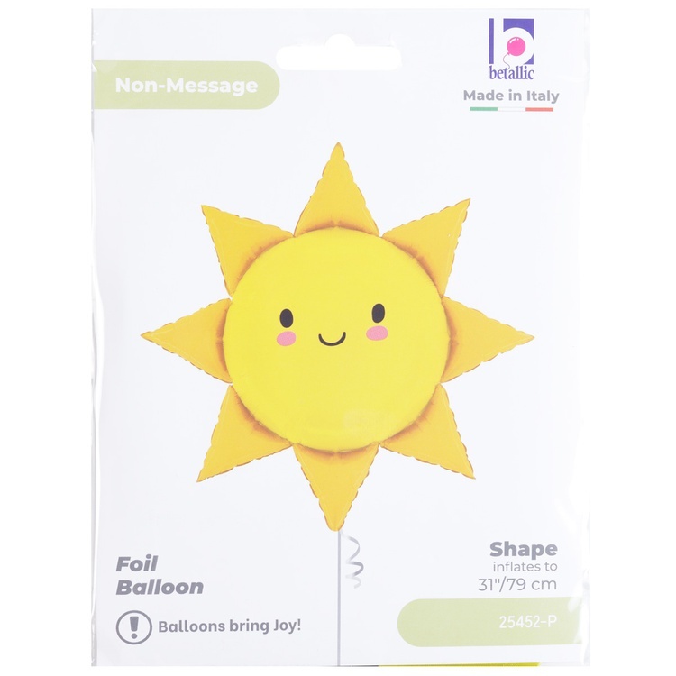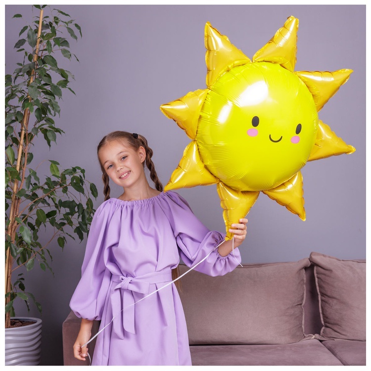 Фольгированная фигура в виде солнца высотой 79 см станет ярким и выразительным акцентом любого праздника. Изысканная детализация и благородная цветовая палитра придают композиции утончённый и стильный вид.