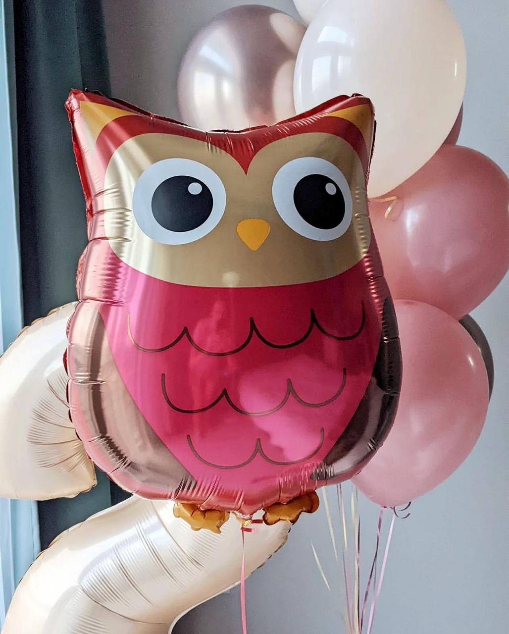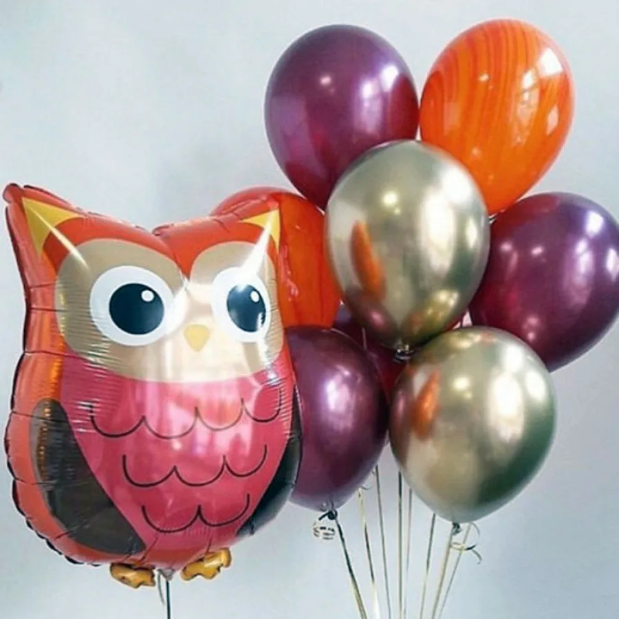 Фольгированная фигура в виде совы высотой 66 см станет очаровательным и стильным акцентом на любом празднике. Детальная проработка образа и гармоничная цветовая палитра придают композиции выразительный и уютный вид.