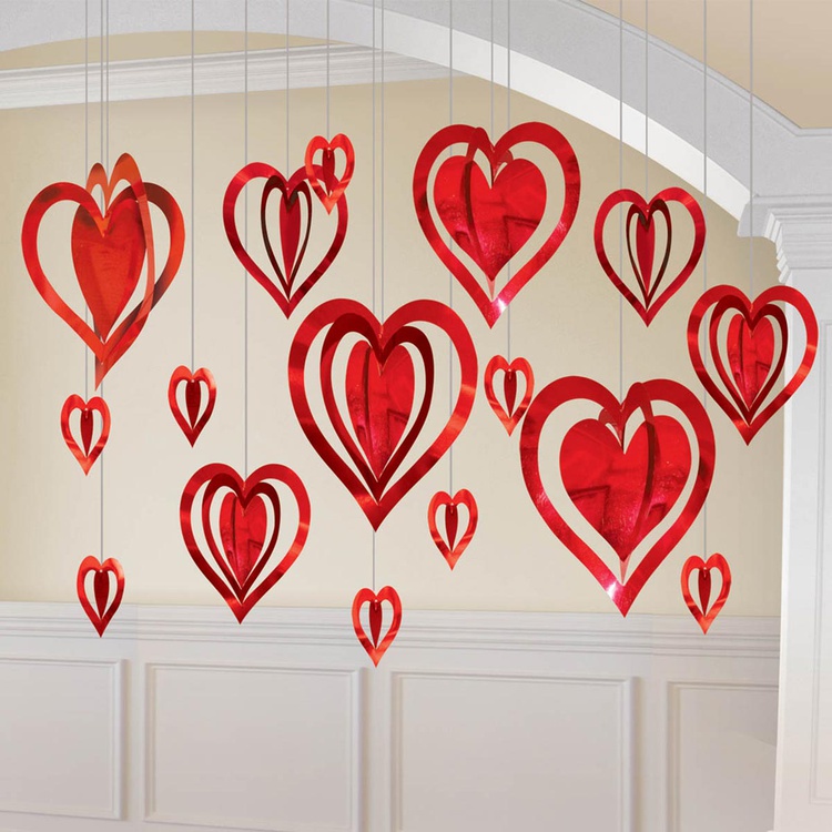 Комплект подвесных объёмных сердец из блестящей фольги — это прекрасный выбор для создания праздничной атмосферы и украшения интерьера.
