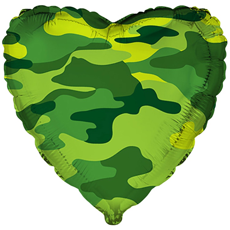 Фольгированный шар-сердце «Камуфляж» диаметром 46 см — это яркий и оригинальный декоративный элемент, который украсит любое мероприятие.