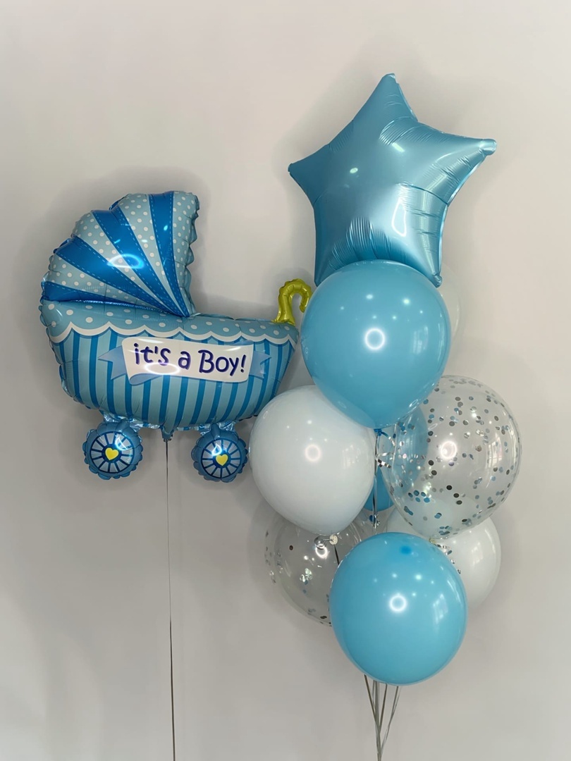 Фольгированный шар «Коляска для мальчика» — это яркий и красивый шар. Отличный выбор для выписки из роддома или в качестве подарка при посещении новорождённого.