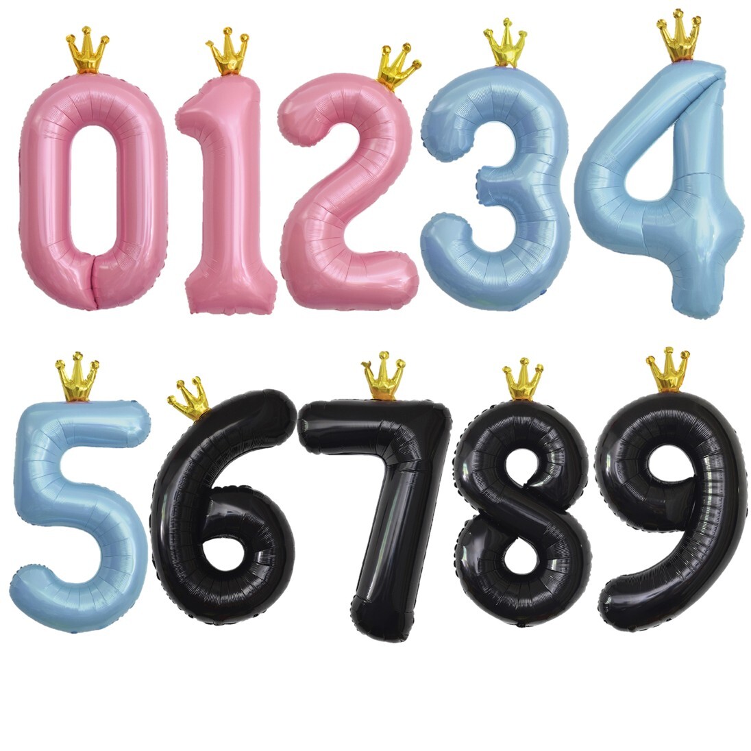 Цифры с короной из полимерной пленки — элегантное решение для любого праздника. Доступны в чёрном, голубом и розовом оттенках, они добавляют событию стиль и статусность, создавая эффектный акцент.