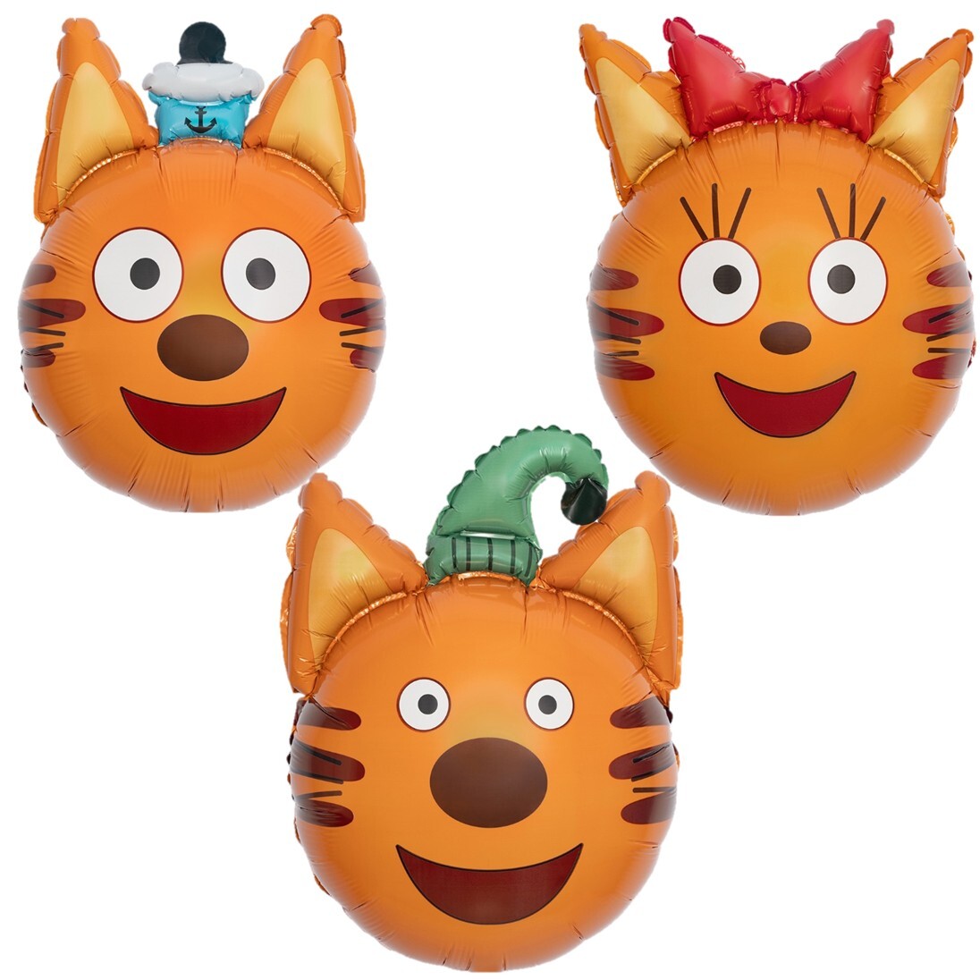 Фольгированные шары в форме голов популярных героев мультсериала «Три кота» на выбор, станут выразительным акцентом детского праздника. Чёткая печать, узнаваемые образы и аккуратные пропорции делают шары эффектным элементом декора и приятным подарком для маленьких гостей.