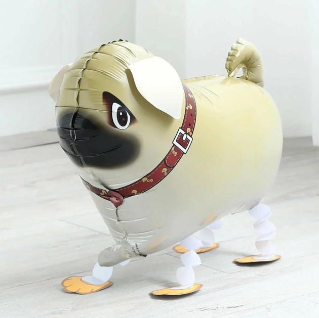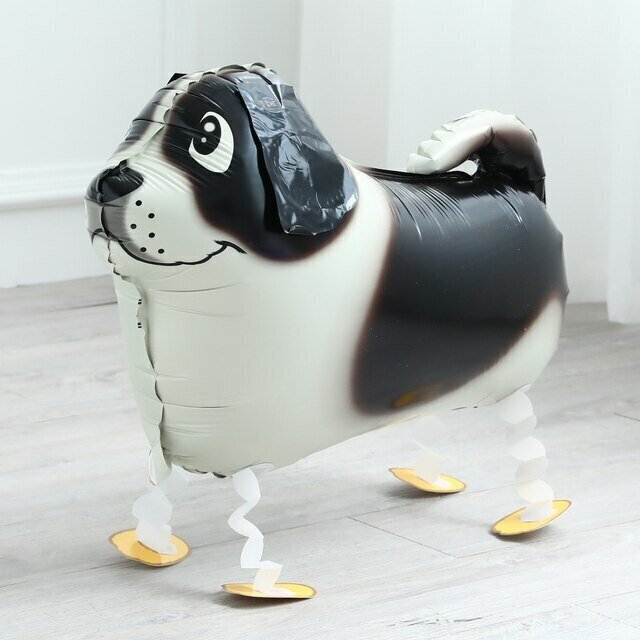 Фольгированная ходячая фигура в виде собаки — эффектный и жизнерадостный элемент праздничного декора. Наполняется исключительно гелием, благодаря чему фигура сохраняет лёгкость и естественное «движение». Встроенный клапан обеспечивает удобство надувания и надёжную герметичность.
