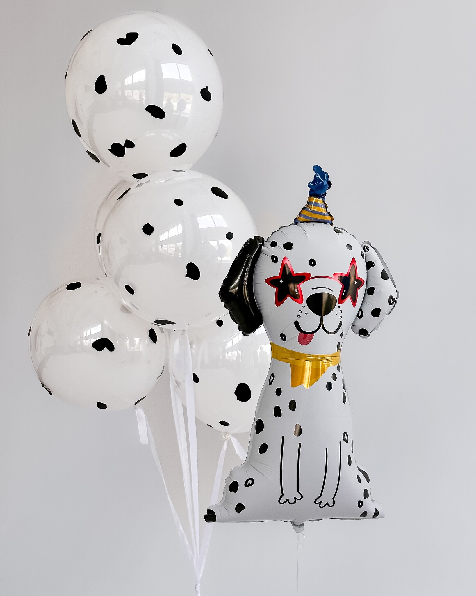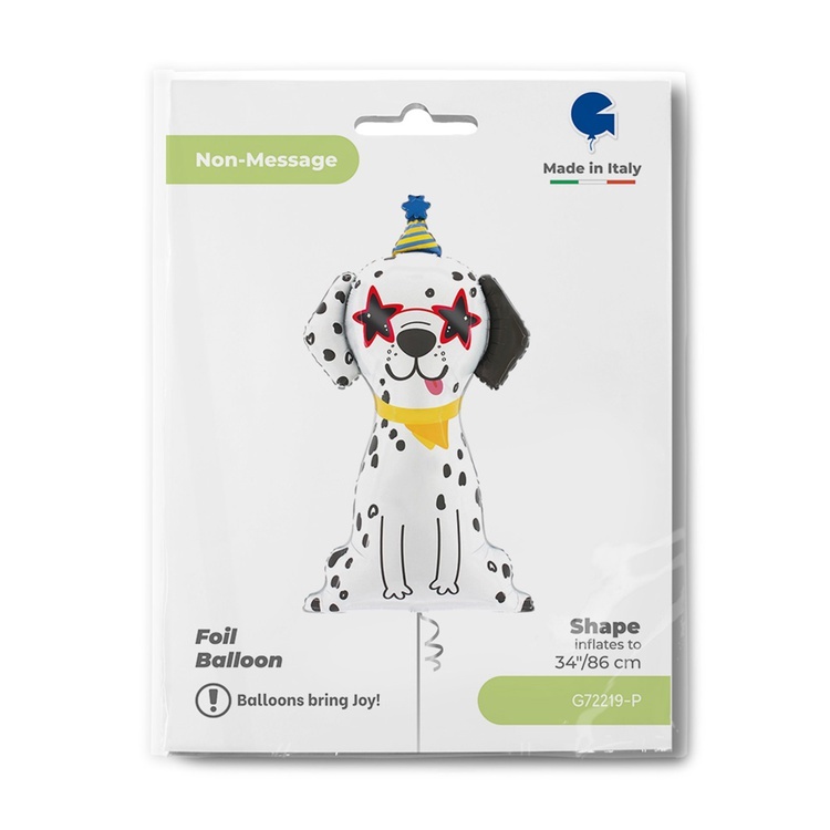 Объёмный фольгированный шар в форме элегантного далматинца с праздничным акцентом станет выразительным украшением любого торжества.