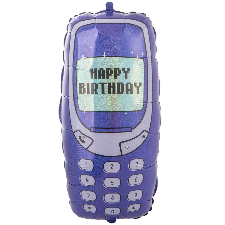 Воздушный фольгированный шар в форме мобильного телефона из 2000х и поздравлением "Happy birthday". Шар поставляется в ненадутом состоянии. Для того, чтобы шар летал, рекомендуем надуть его гелием. Плотно надутый шар запаивать не требуется – шар снабжен клапаном, который хорошо удерживает гелий внутри шара. Надутый гелием шар летает от двух дней. Не забудьте привязать надутый гелием шар лентой к грузику, чтобы он не улетел (гелий, лента и грузик не входят в комплект, а приобретаются отдельно). Шар снабжён красочной упаковкой с изображением товара, что удобно для выкладки в торговом зале магазина. Внимание! Цветовой оттенок шара в действительности может отличаться от представленного на фотографии в зависимости от настроек Вашего монитора.