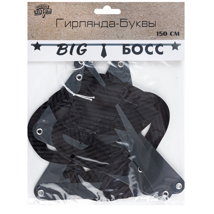 Стильная фольгированная гирлянда с текстом BIG БОСС черного цвета.