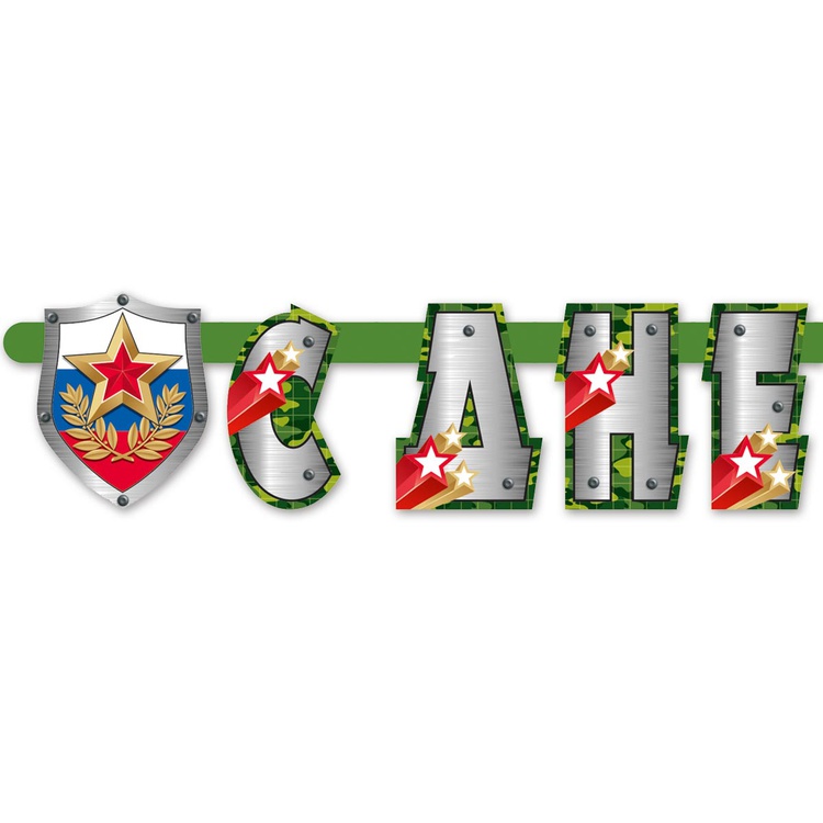 Гирлянда-буквы «С днем Защитника Отечества» с камуфляжным принтом длиной 275 см — стильное украшение для интерьера в стиле милитари или камуфляж. Принт гармонично впишется в любой дизайн, добавляя нотку брутальности и оригинальности. Изготовлена из качественных материалов, что обеспечивает долговечность и удобство в использовании.