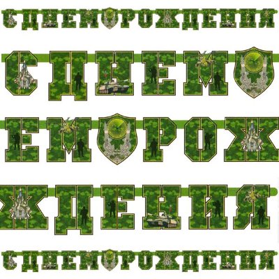Гирлянда-буквы «С Днем Рождения» с камуфляжным принтом длиной 210 см — стильное украшение для интерьера в стиле милитари или камуфляж. Принт гармонично впишется в любой дизайн, добавляя нотку брутальности и оригинальности. Изготовлена из качественных материалов, что обеспечивает долговечность и удобство в использовании.
