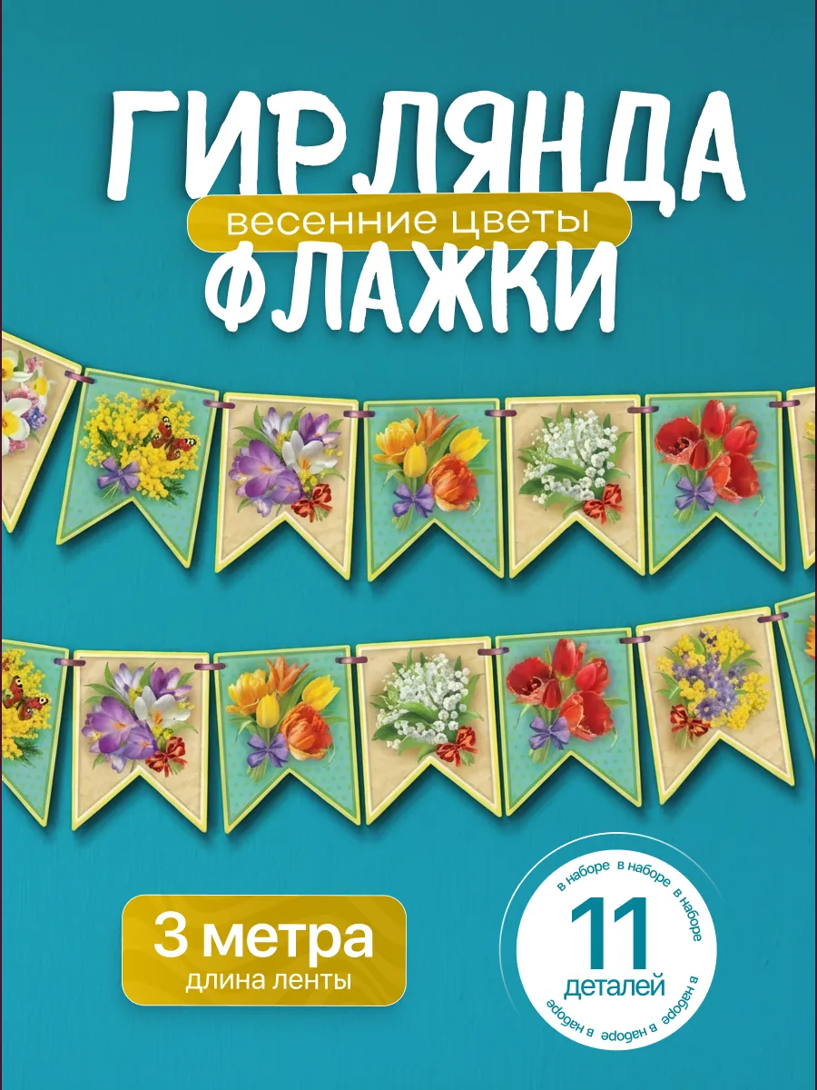 Гирлянда-флажки «Весенние цветы» — это декоративный элемент, который добавит весеннее настроение в ваш интерьер или украсит праздничное мероприятие.