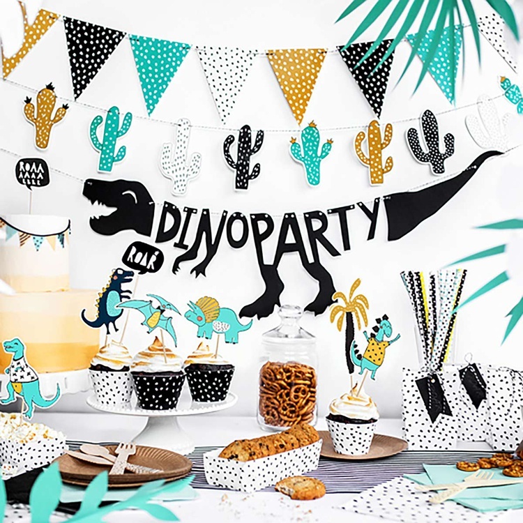 Стильная гирлянда-буквы «С Днем Рождения» в стиле черного динозавра длиной 90 см — идеальное украшение для праздничного интерьера.