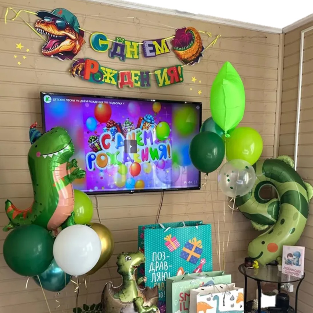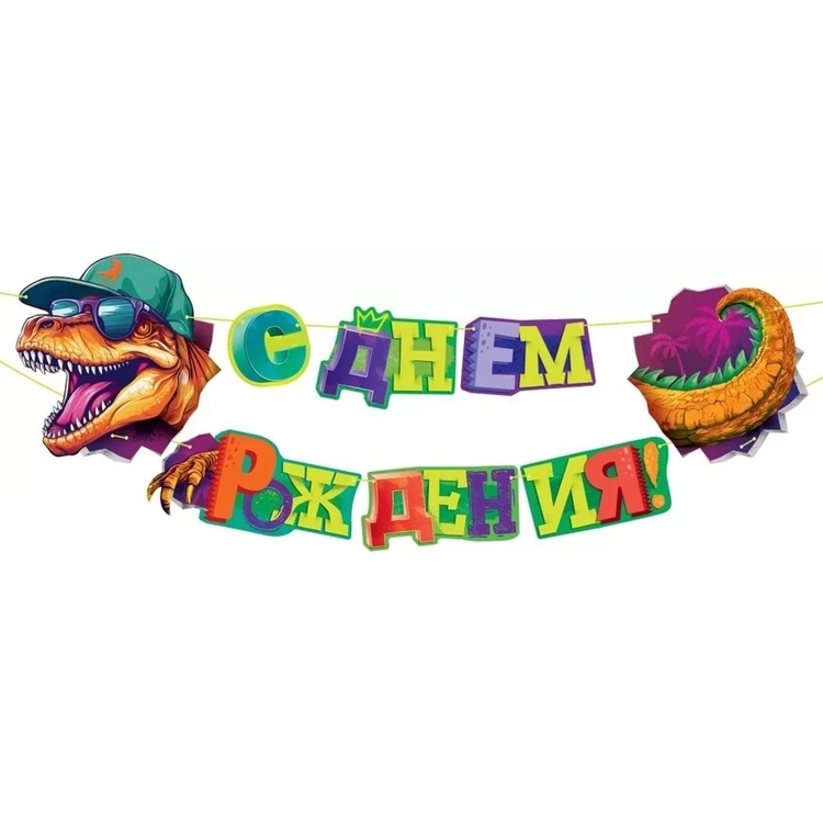 Стильная гирлянда-буквы «С Днем Рождения» в стиле динозавров длиной 120 см — идеальное украшение для праздничного интерьера.
