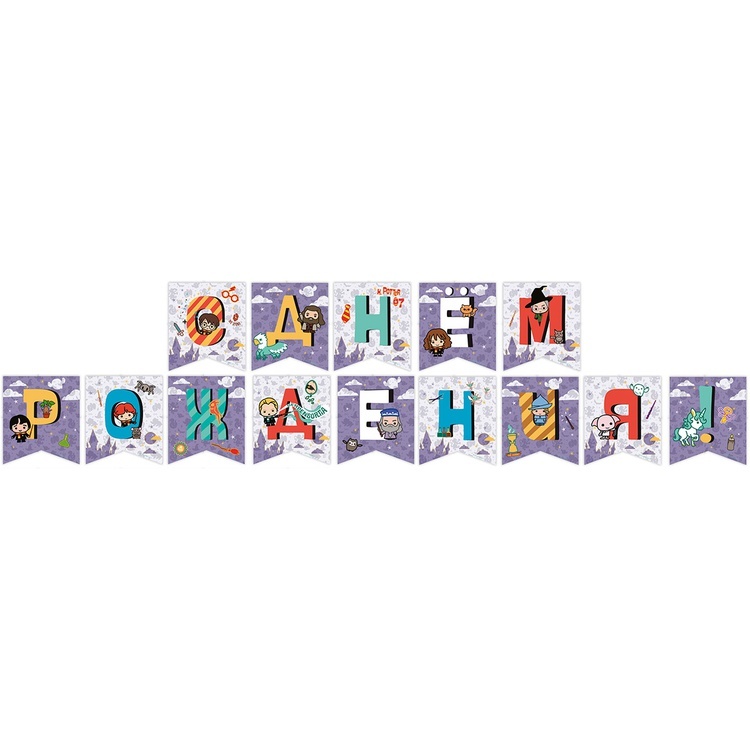 Яркая гирлянда-буквы «С Днем Рождения» с принтом «Гарри Поттер и друзья» длиной 220 см — идеальное украшение для праздничного интерьера. Яркий дизайн добавит настроения любому торжеству, а качественный материал гарантирует долговечность и лёгкость в развешивании.