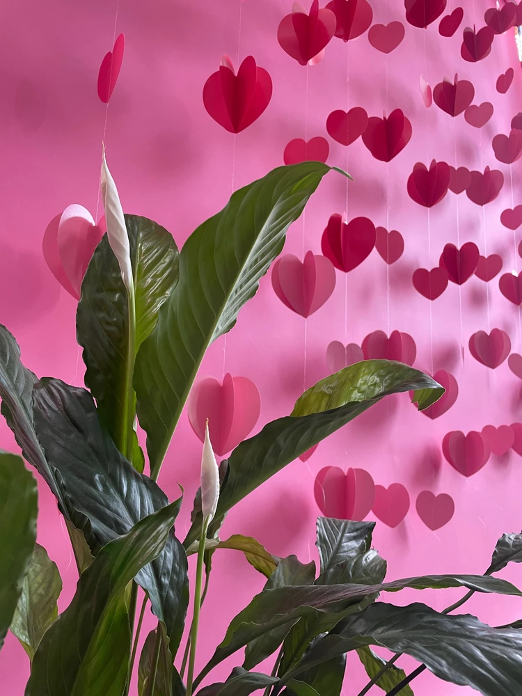 6 вертикальных гирлянд, каждая из которых украшена 3D и 2D сердечками. Гирлянды создают яркий и праздничный акцент в интерьере, добавляя ему атмосферу тепла и радости.