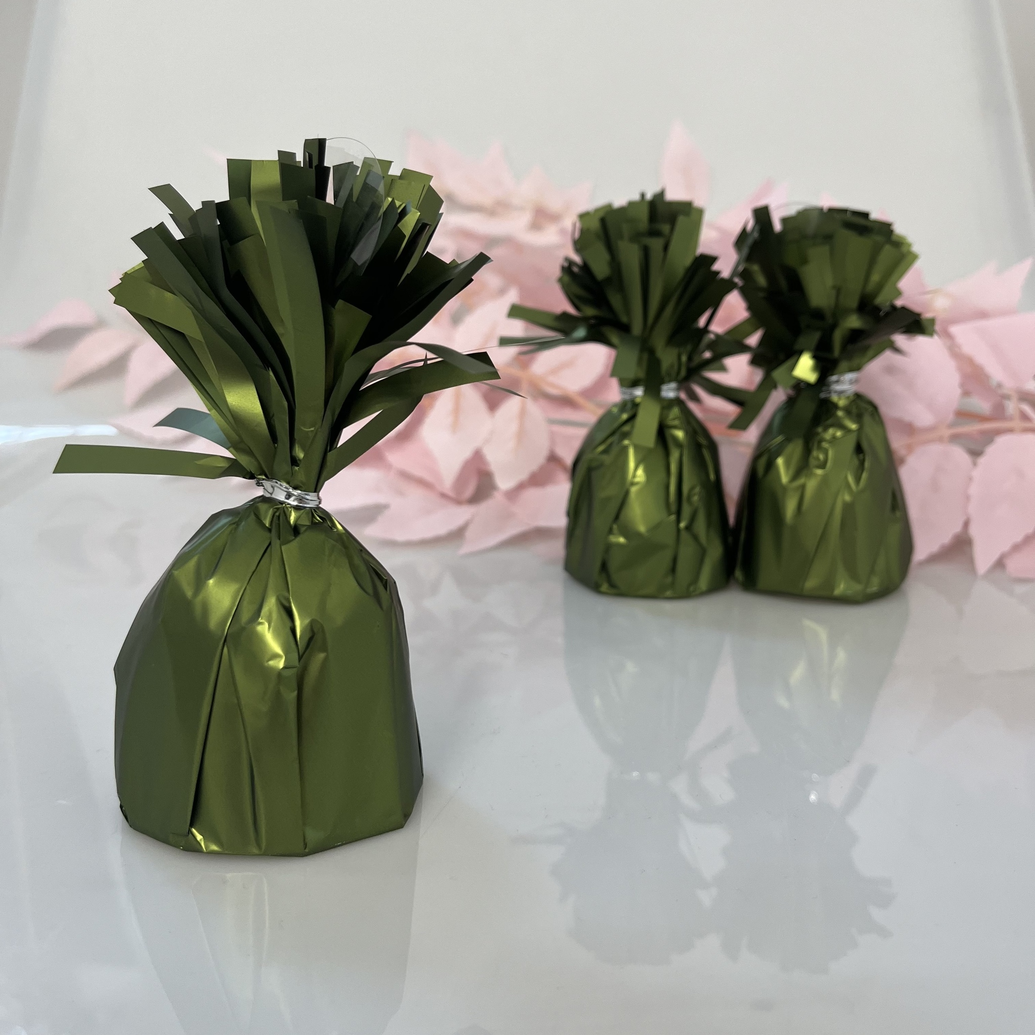 Грузик в форме конуса напоминает конфету-трюфель, упакованную в блестящую обёртку. Цвет хаки, который подойдет для оформления милитари вечеринки.
