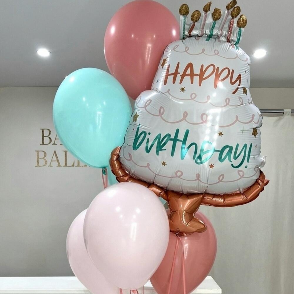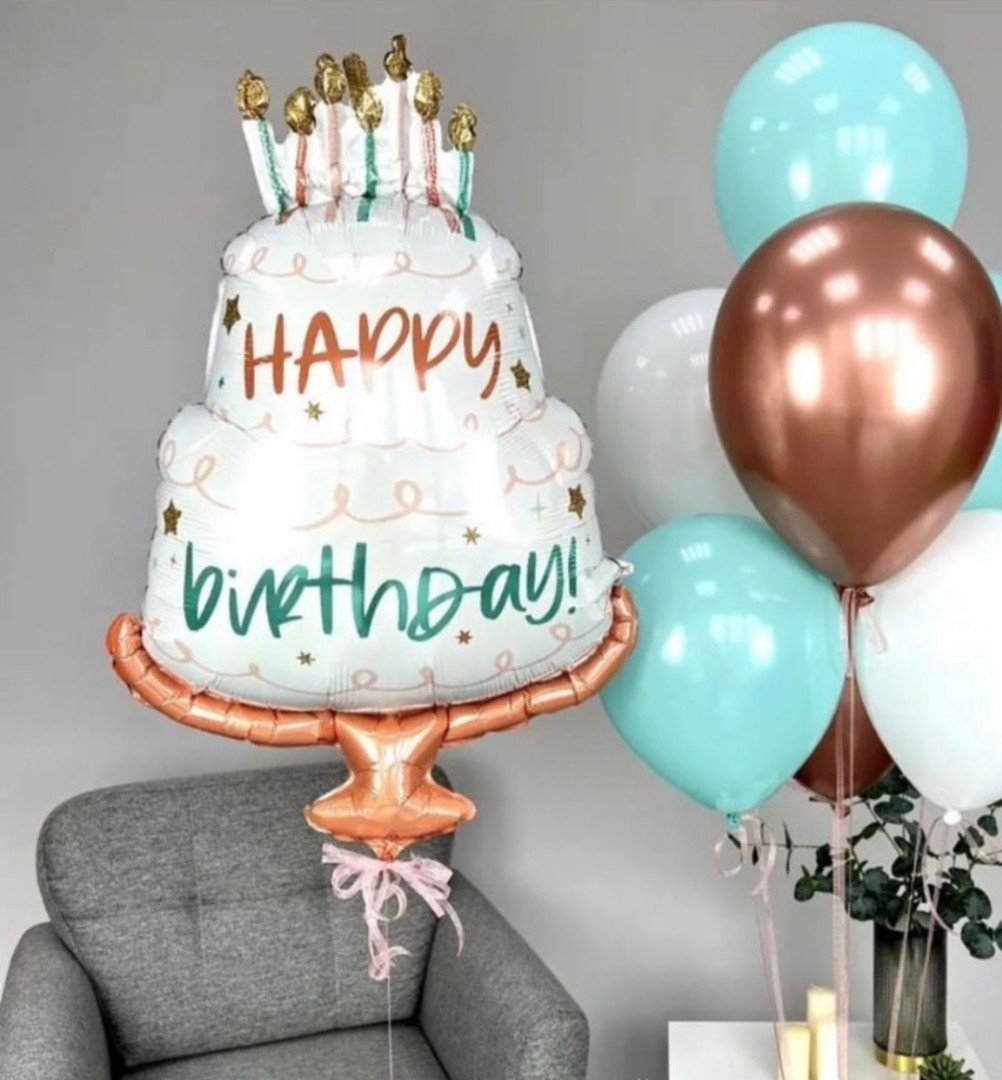 Фольгированный шар в форме торта со свечами — это элегантный и стильный элемент декора для любого праздника.