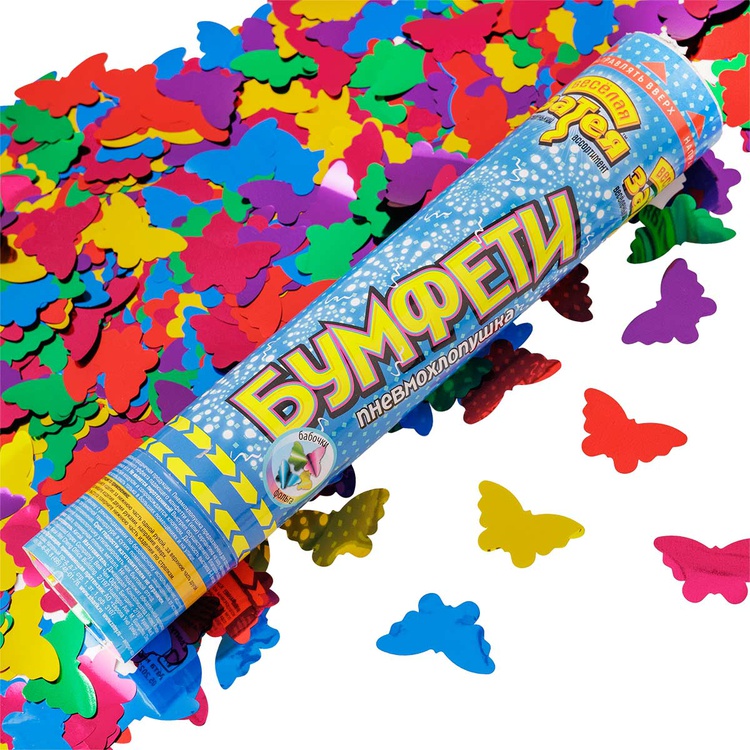 Яркая пневмохлопушка создаст мгновенную атмосферу праздника и сделает фото- и видеосъёмку более впечатляющей. При выстреле запускается красочное конфетти, которое красиво рассеивается в воздухе, добавляя торжественности моменту.