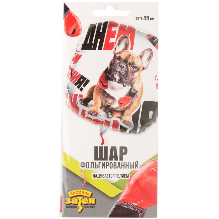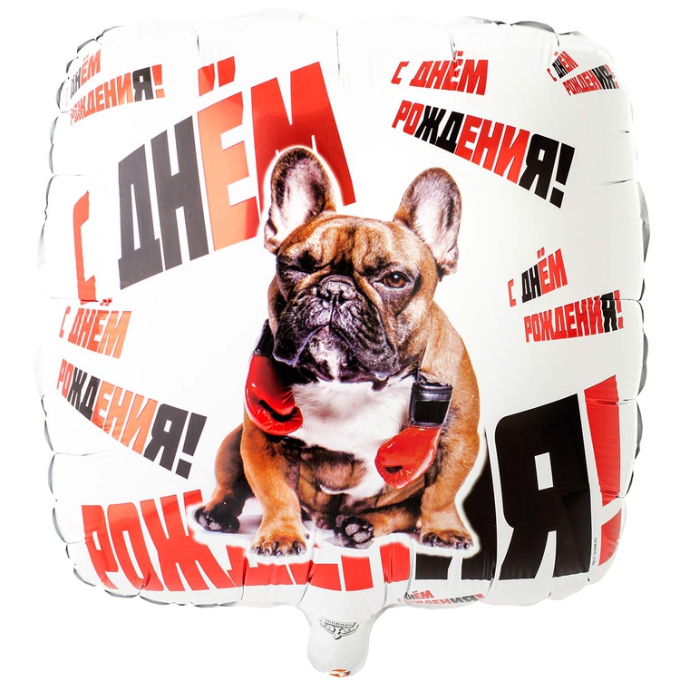 Объёмный фольгированный шар с праздничной надписью и изображением милого боксёра станет эффектным акцентом вашего торжества. Яркие детали и аккуратный дизайн создают атмосферу веселья и тепла.