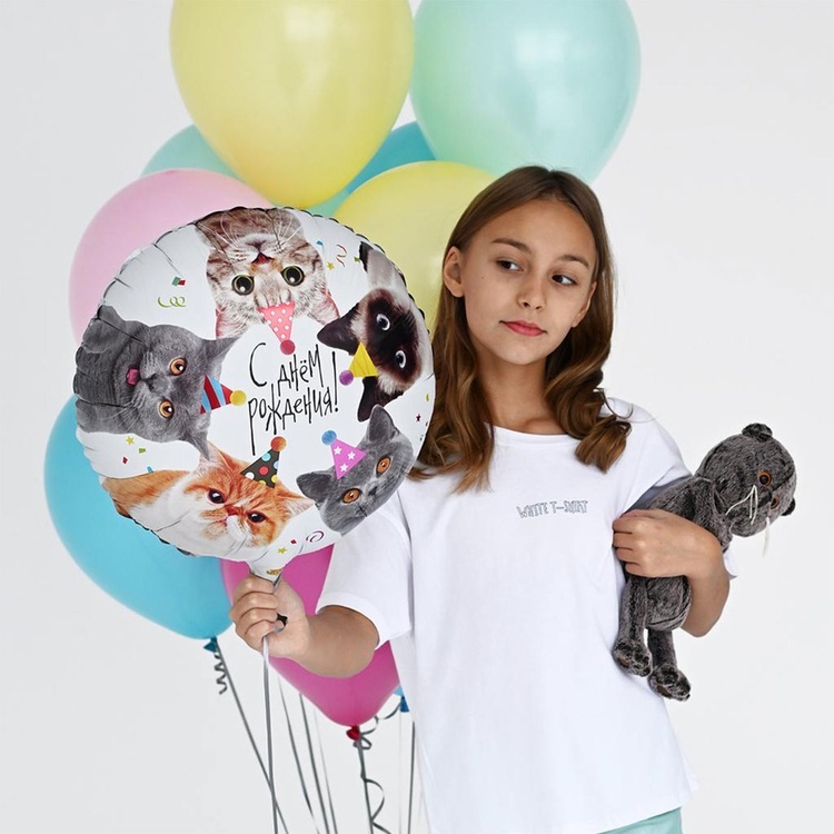 Объемный шар с фотографичным изображением котиков станет выразительным элементом праздничного декора.