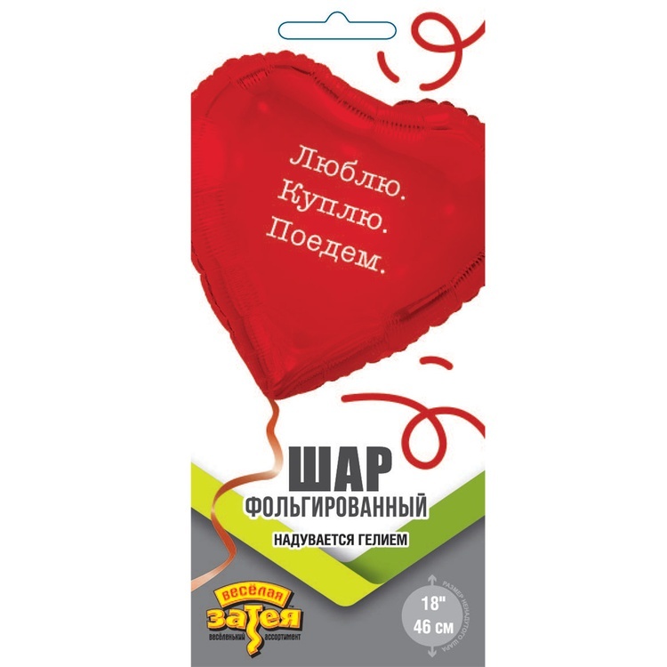 Фольгированный шар-сердце «Люблю Куплю Поедем», 46 см
