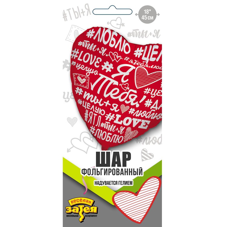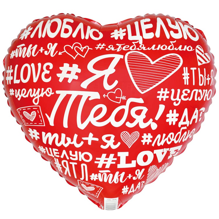 Фольгированный шар-сердце «Я Тебя Люблю. Хештеги», 46 см