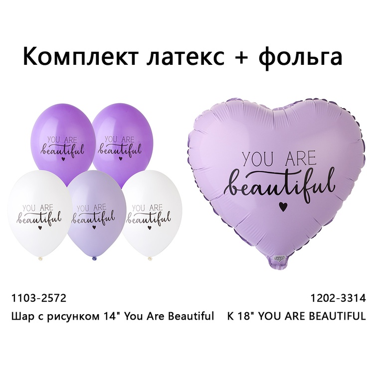 Фольгированный шар-сердце «You are Beautiful», 46 см
