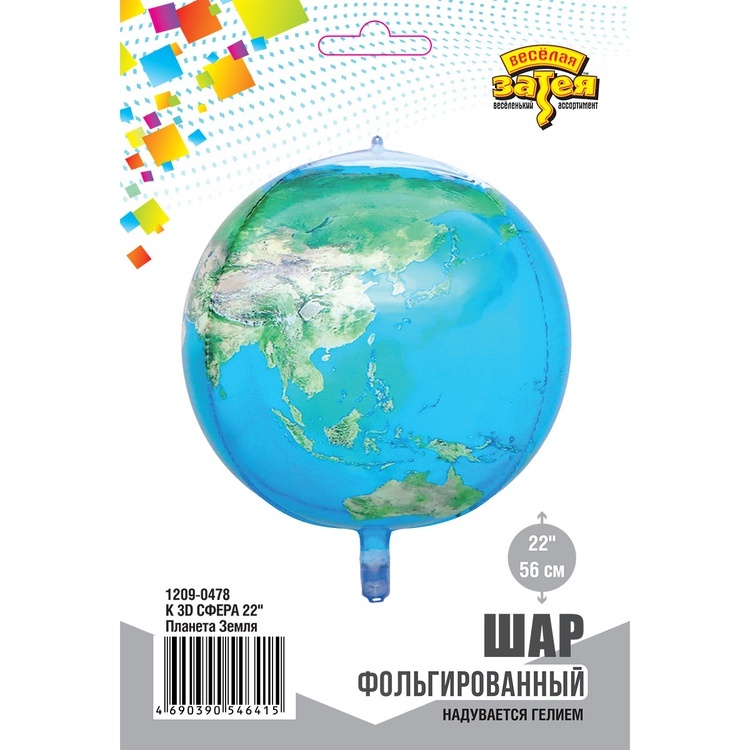 Стильный фольгированный шар «Планета Земля» — безупречный акцент праздничного декора, создающий атмосферу торжества и изысканности. Блестящая поверхность шара отражает свет, наполняя пространство мягким сиянием и чувством праздника.