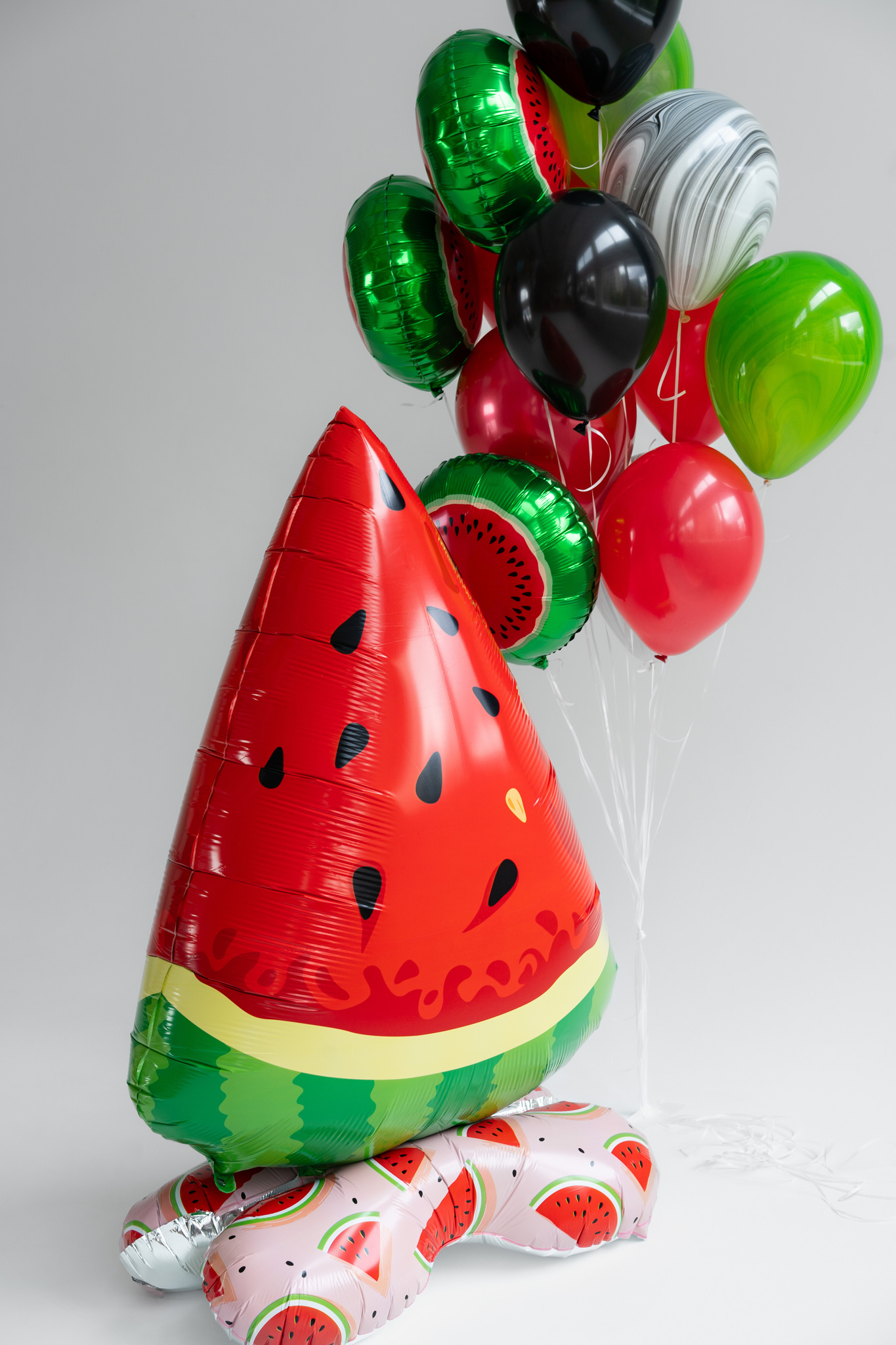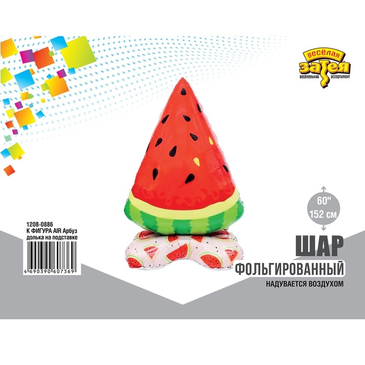 Фольгированная фигура в виде дольки арбуза на подставке высотой 152 см станет эффектным и стильным украшением праздника. Яркие оттенки и изящная форма придают шаровой композиции выразительный и радостный вид.