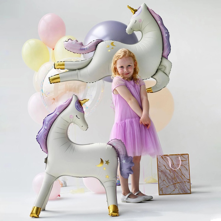 Фольгированная фигура в виде единорога — это милый и стильный элемент для детских праздников, дней рождения и фотозон.