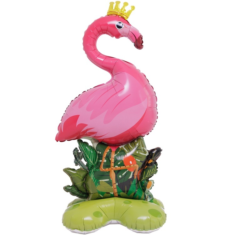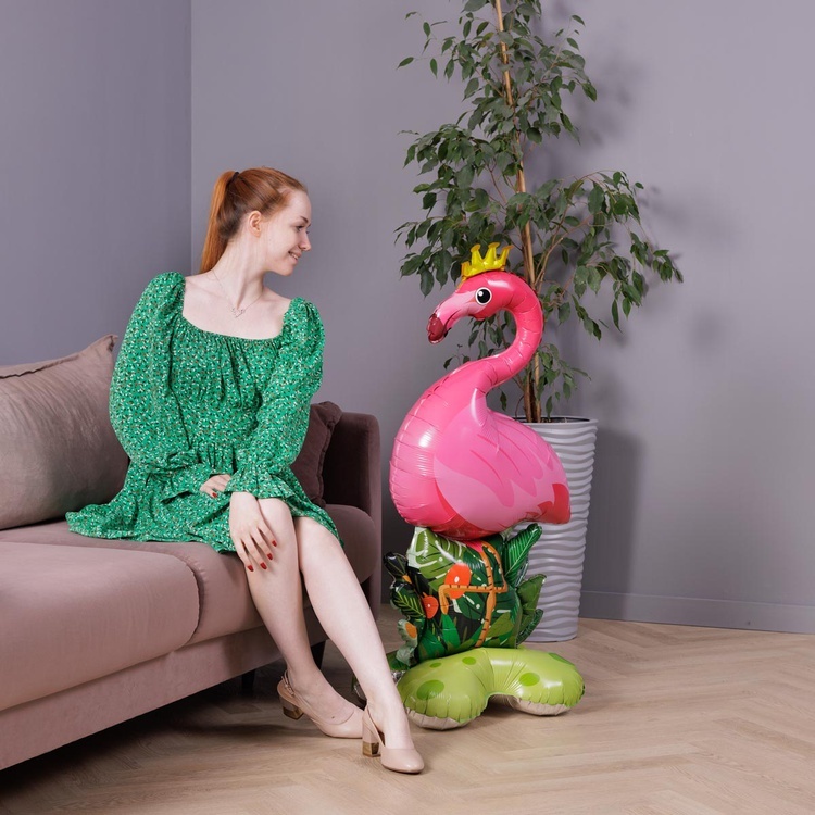Фольгированная фигура в виде розового фламинго на подставке высотой 155 см станет эффектным и стильным украшением праздника. Яркие оттенки и изящная форма придают шаровой композиции выразительный и радостный вид.