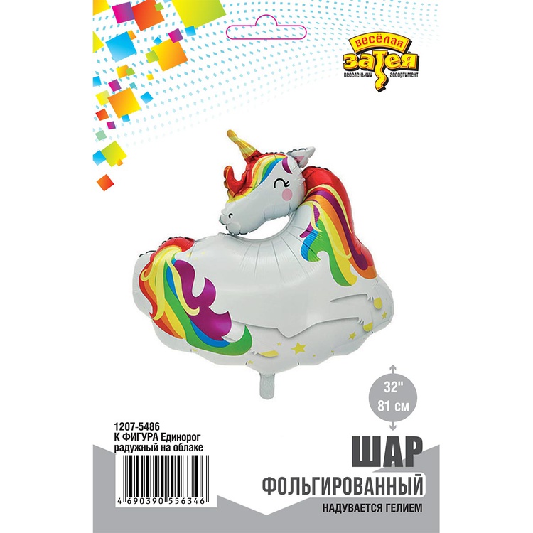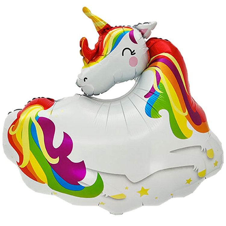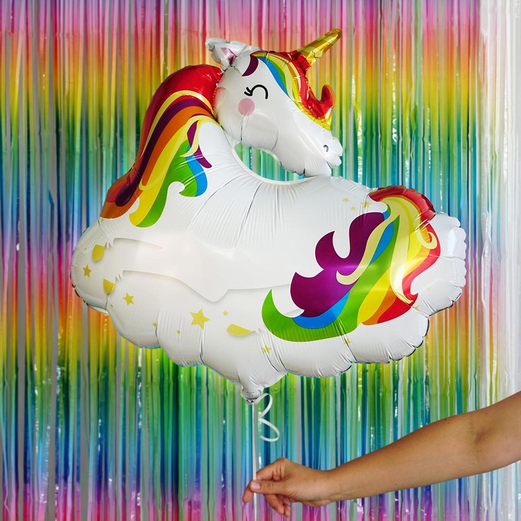 Фольгированная фигура в виде радужного единорога на облаке — это милый и стильный элемент для детских праздников, дней рождения и фотозон.