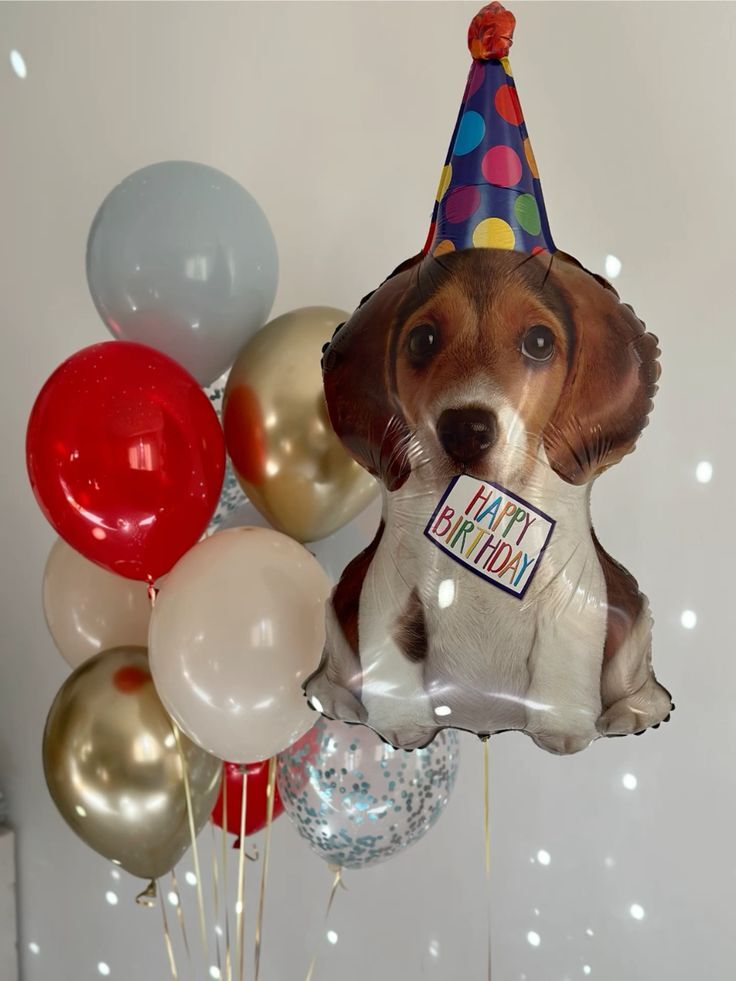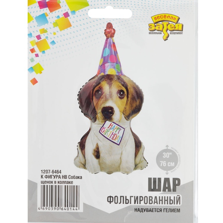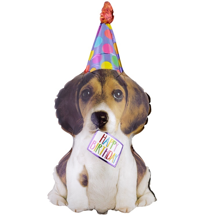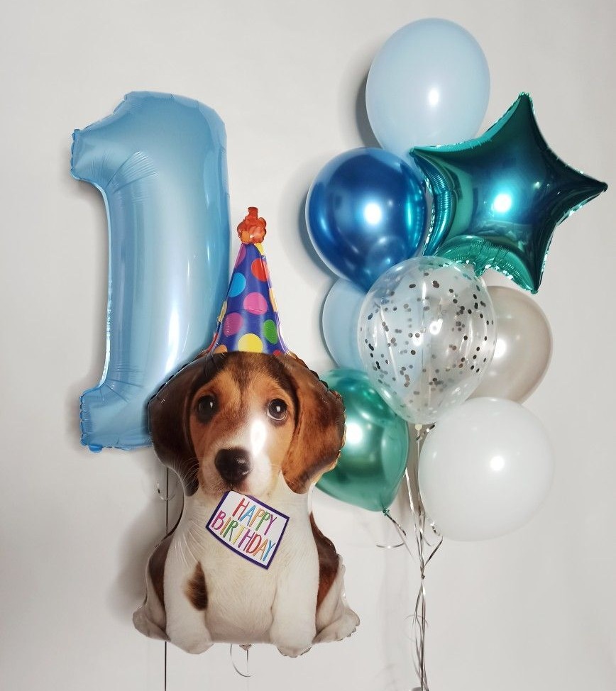 Стильный объёмный шар в форме весёлого щенка в праздничном колпаке создаёт тёплую и радостную атмосферу на любом мероприятии. Такой акцент идеально подойдёт для дня рождения, выписки, оформления витрины или создания выразительной фотозоны.