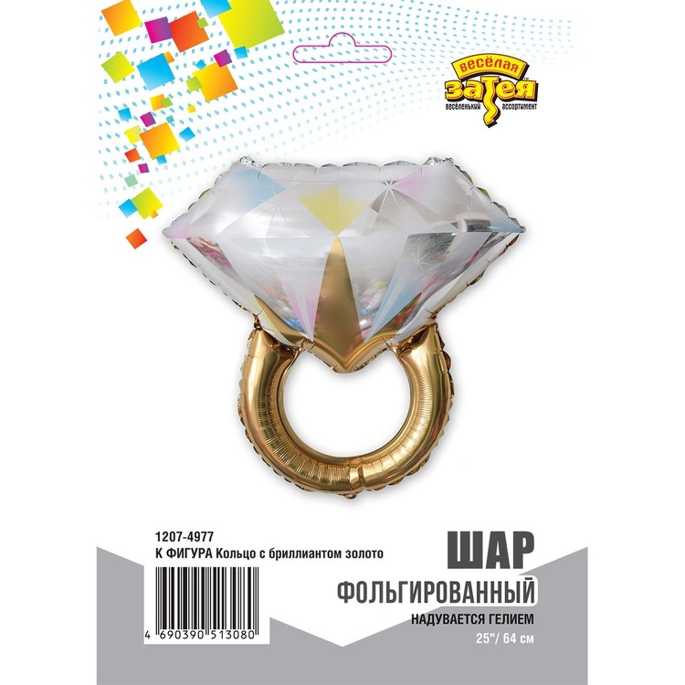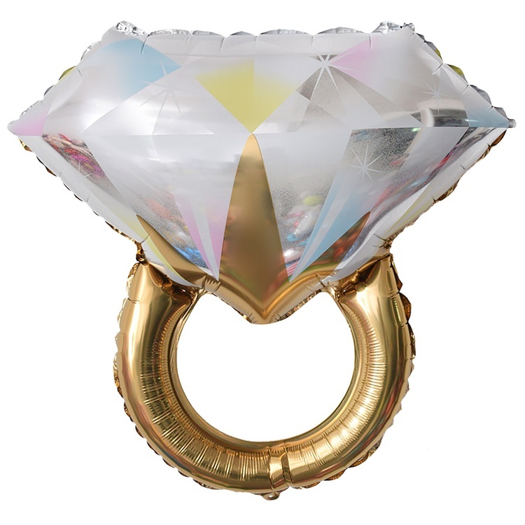 Впечатляющий фольгированный шар в форме изящного кольца с сияющим бриллиантом станет выразительным акцентом любого торжества. Крупный формат подчёркивает эффектность композиции и сразу притягивает внимание, создавая атмосферу особенного момента.