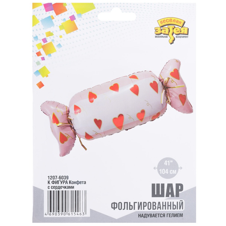 Фольгированный шар-фигура «Конфета с сердечками» — это нежный воздушный шар, выполненный из качественной полимерной плёнки. Он станет ярким и запоминающимся элементом для любого праздника.