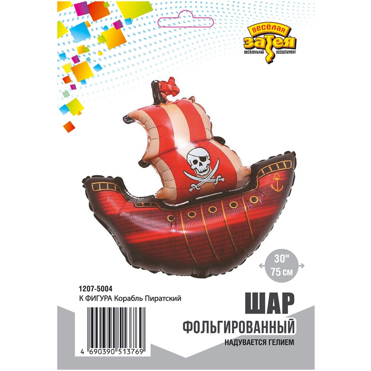 Сложная, объемная фигура в форме пиратского корабля. При надувании рекомендуется использовать гелий. Имеет встроенный клапан - что упрощает надувание. Шар упакован в красочную упаковку.