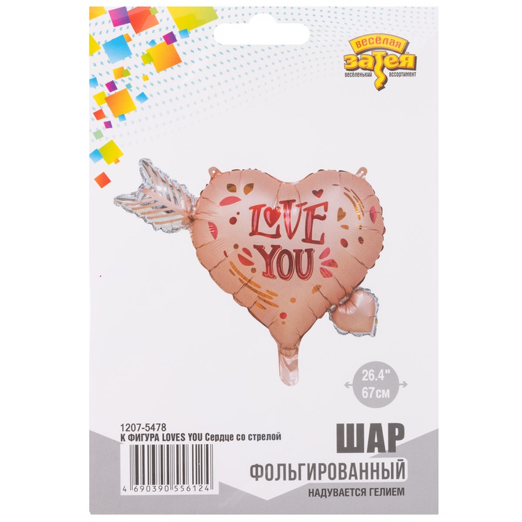 Фольгированный шар-сердце со стрелой — идеальное украшение для Дня святого Валентина. На шаре романтичная надпись «Love you», что создаёт волшебную атмосферу.