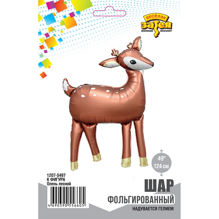 Большой объемный фольгированный шар высотой 124см в форме милого лесного оленя коричневого цвета. При надувании рекомендуется использовать гелий. Имеет встроенный клапан -что упрощает надувание. Поставляется в красочной упаковке с цветным изображением шара, благодаря чему можно выставлять товар в сдутом виде. Размер шара 96x124см. Тонкая миларовая (фольга на полиэтиленовой основе) пленка позволяет шарам не сдуваться до 5 дней.