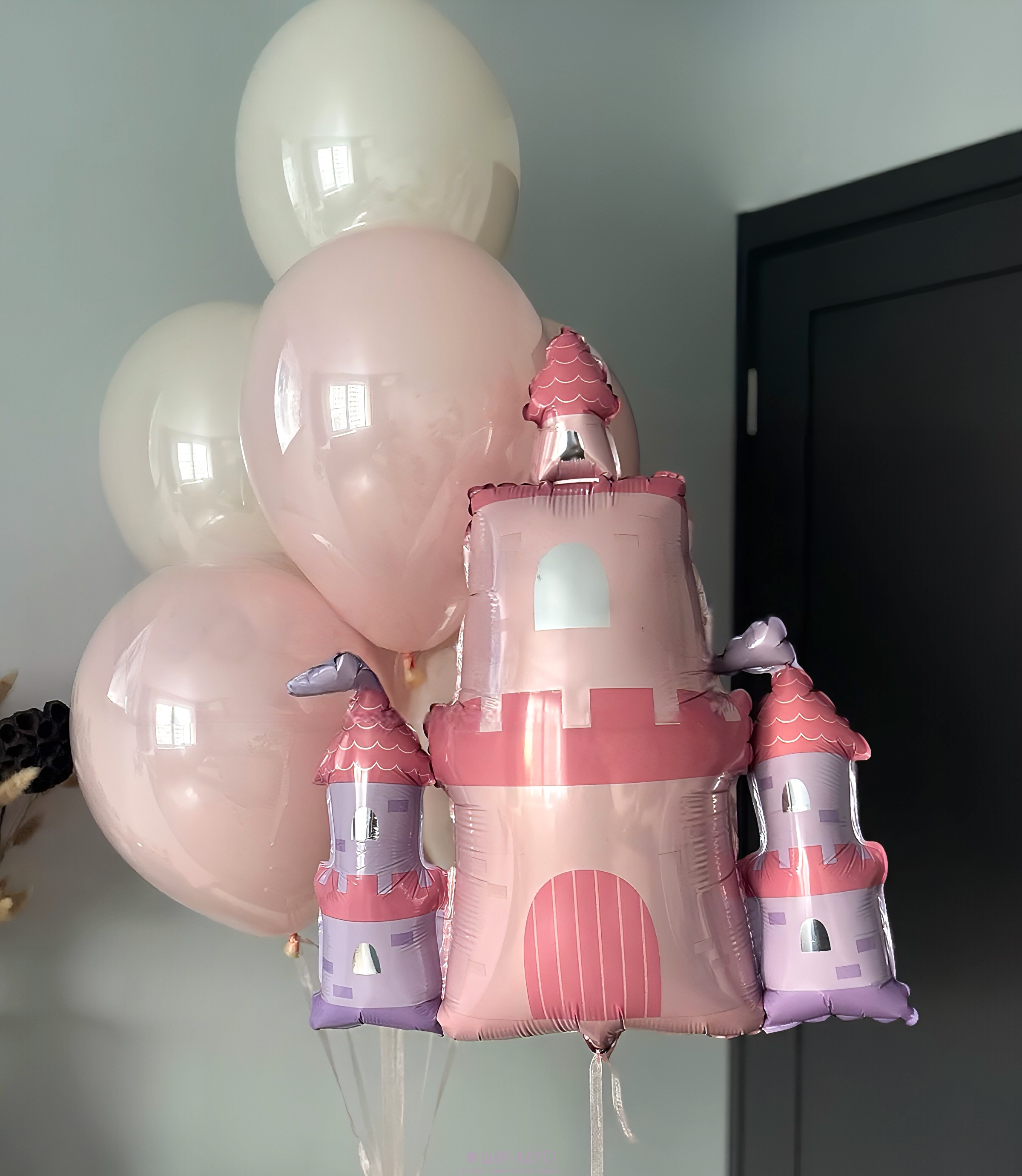 Эффектный фольгированный шар в форме замка принцессы станет выразительным акцентом праздничного оформления. Благородный дизайн подчёркивает особый статус события и гармонично вписывается в торжественный декор, фотозону или композицию из шаров.