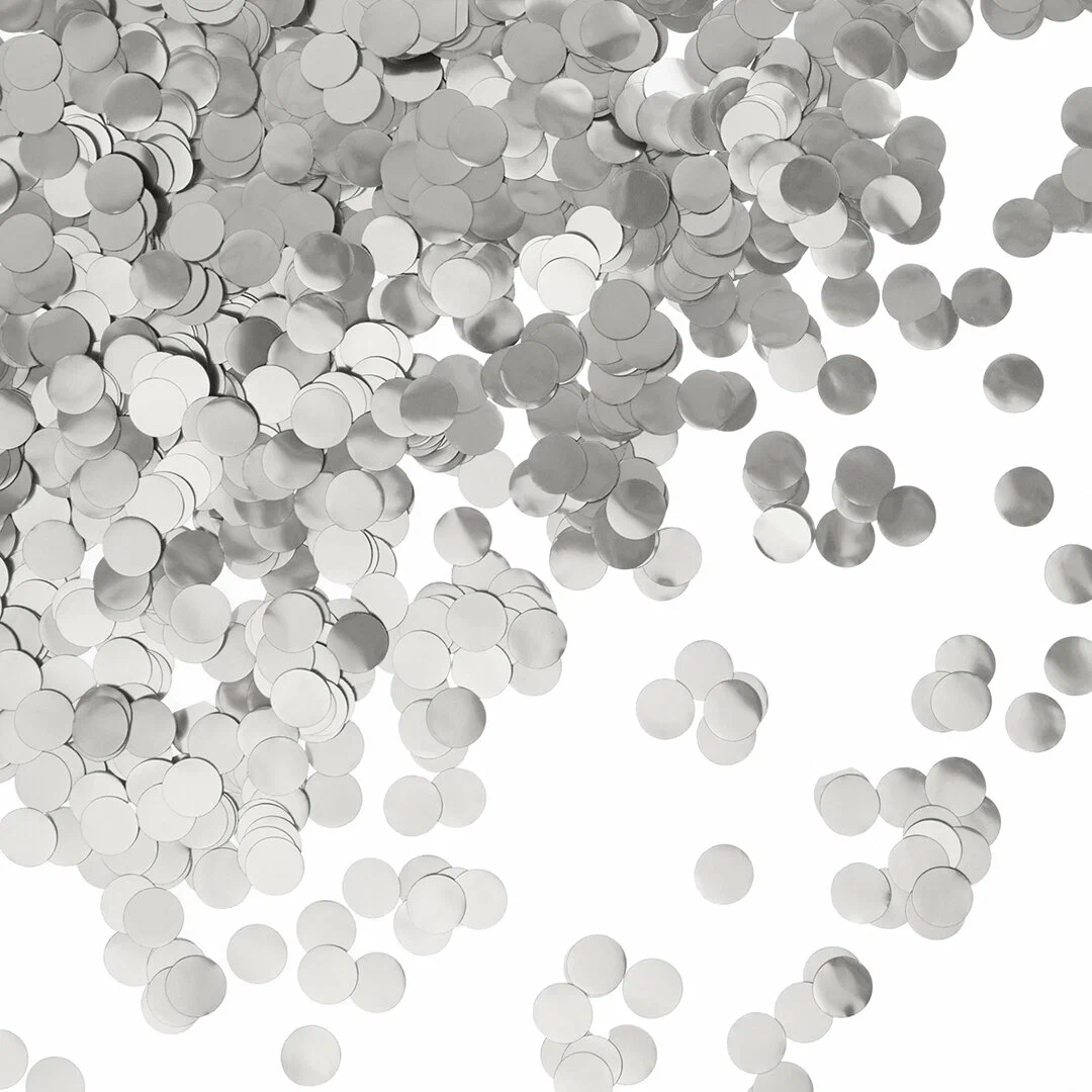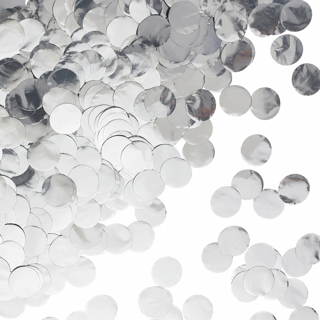 Блестящее фольгированное конфетти серебряного цвета. Вес упаковки 20 гр.