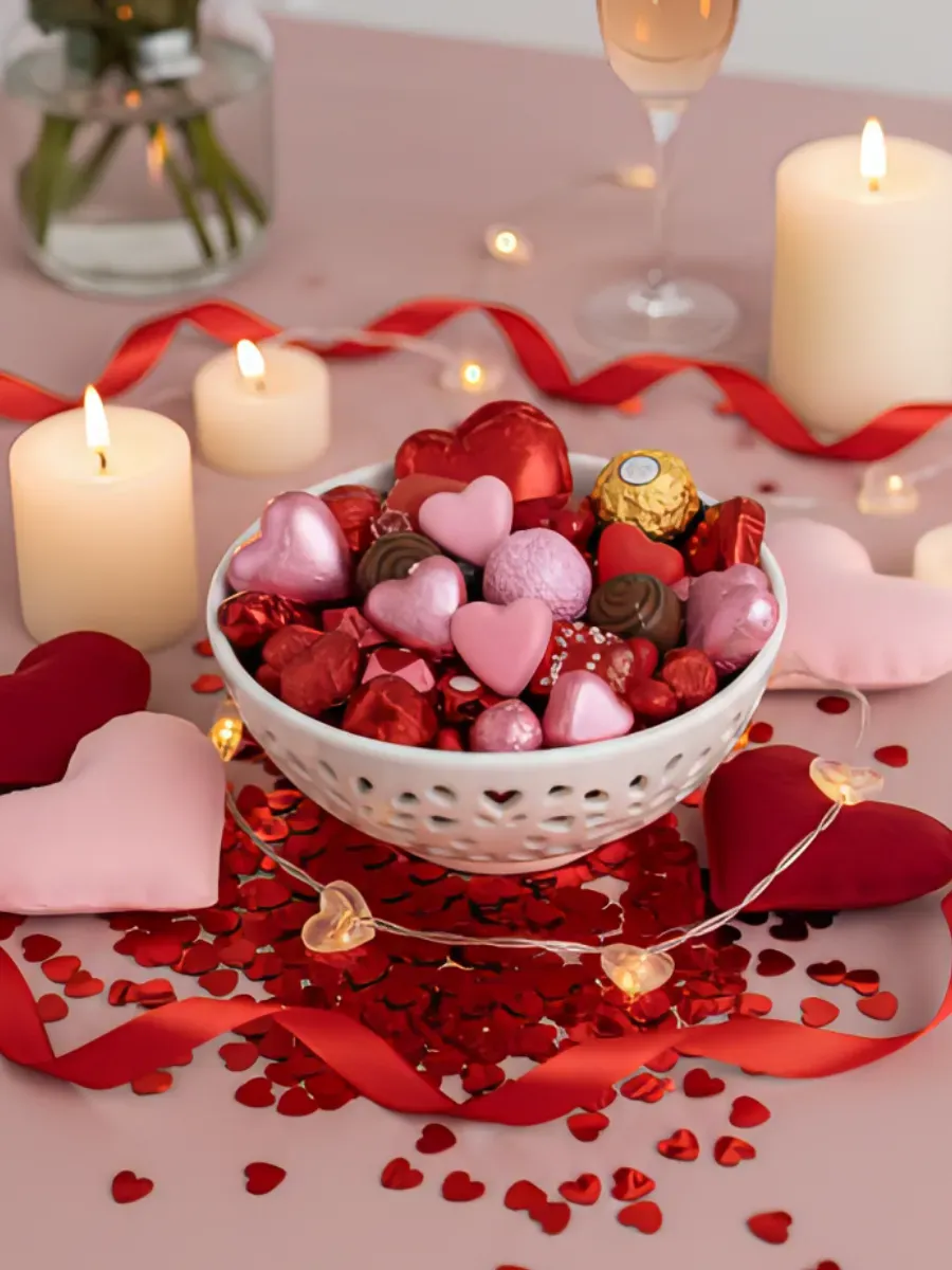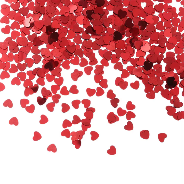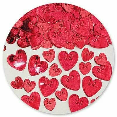 Мелко нарезанное конфетти в форме сердечек с вензелями — это яркий и романтичный декор для праздничного стола. Разнообразие размеров сердечек добавляет уникальности и нарядности. Такой элемент декора станет необычным украшением для любого торжественного мероприятия.