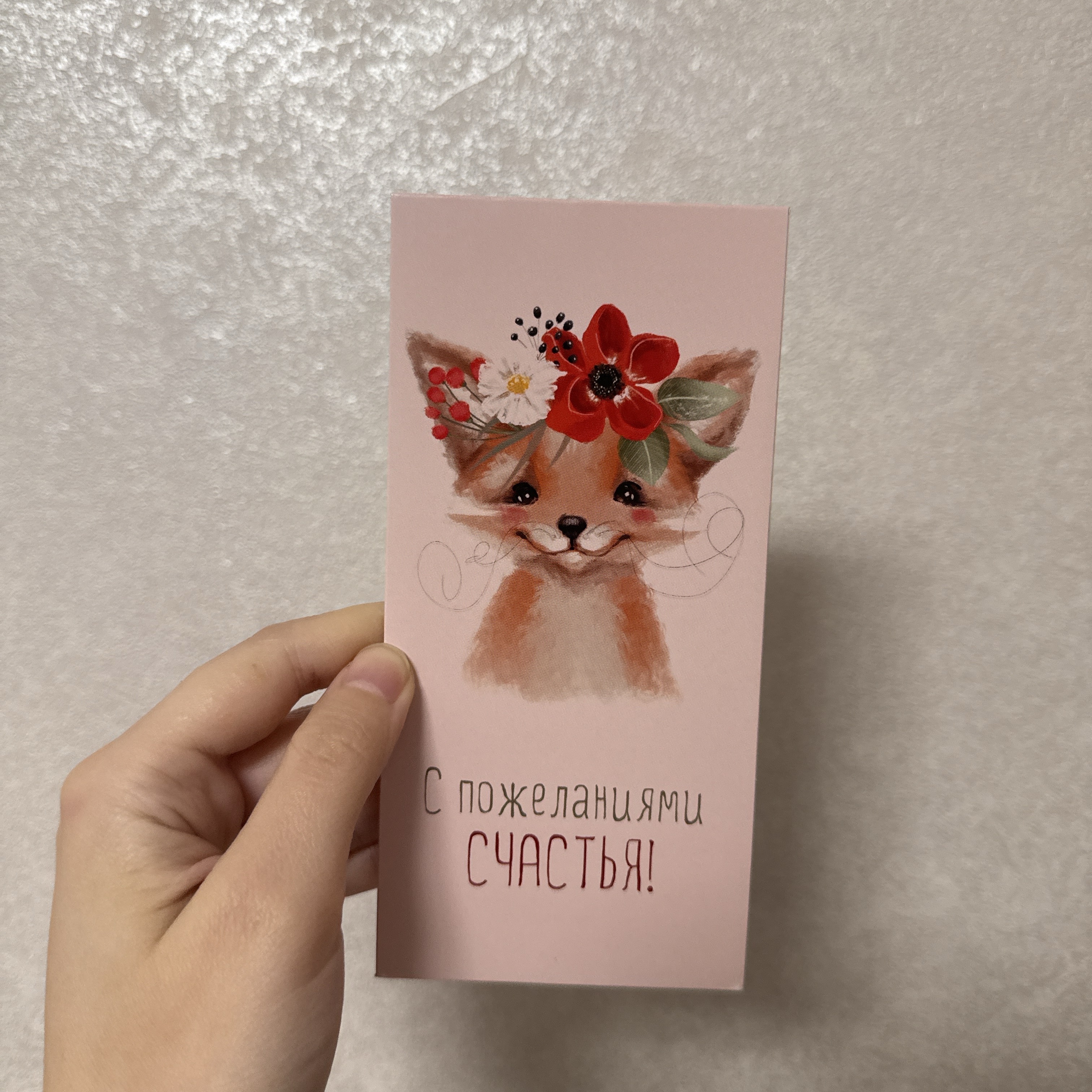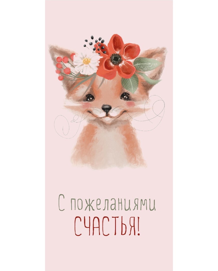 Конверт для денег, «С пожеланиями счастья!» (лисенок с цветами)