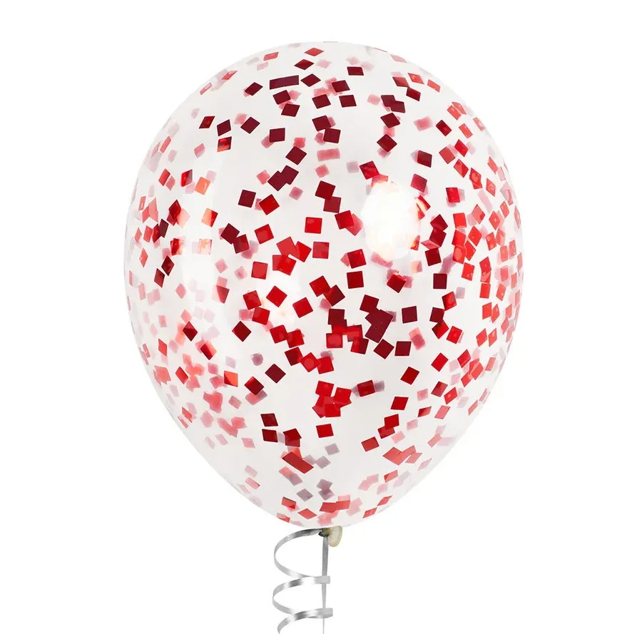 Латексный шар с мелким красным конфетти, квадрат, 36 см